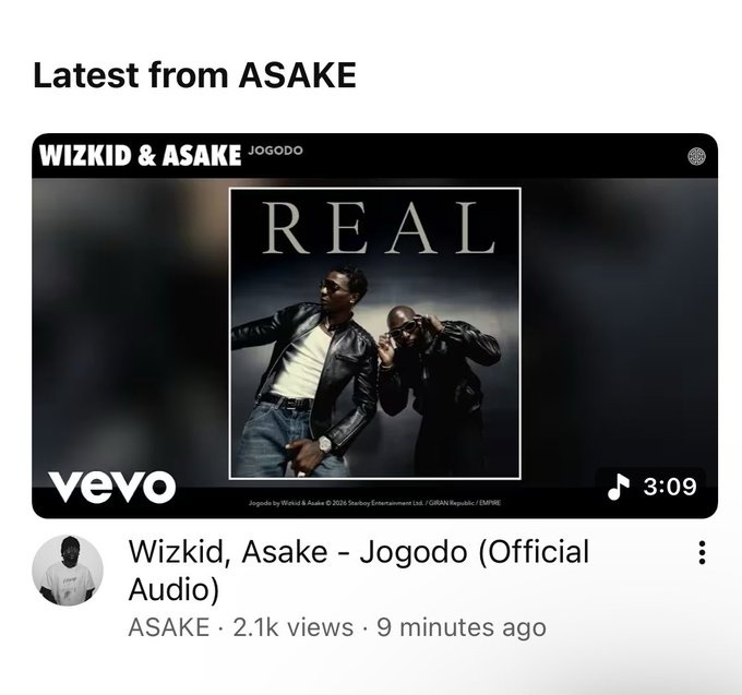 The lead single from their joint EP *REAL, Vol. 1*, set for January 23, arrived on Asake’s YouTube channel, produced by Magicsticks. The four-track project includes Turbulence, Jogodo, Iskolodo, and Alaye, with pre-saves now live on Spotify, Apple Music, and Empire’s site. Asake called working with Wizkid a ‘big privilege,’ while Olamide amplified the hype and Spotify featured them on New Music Friday Nigeria. Fans praise its infectious rhythm, with one calling it the first banger of the year.